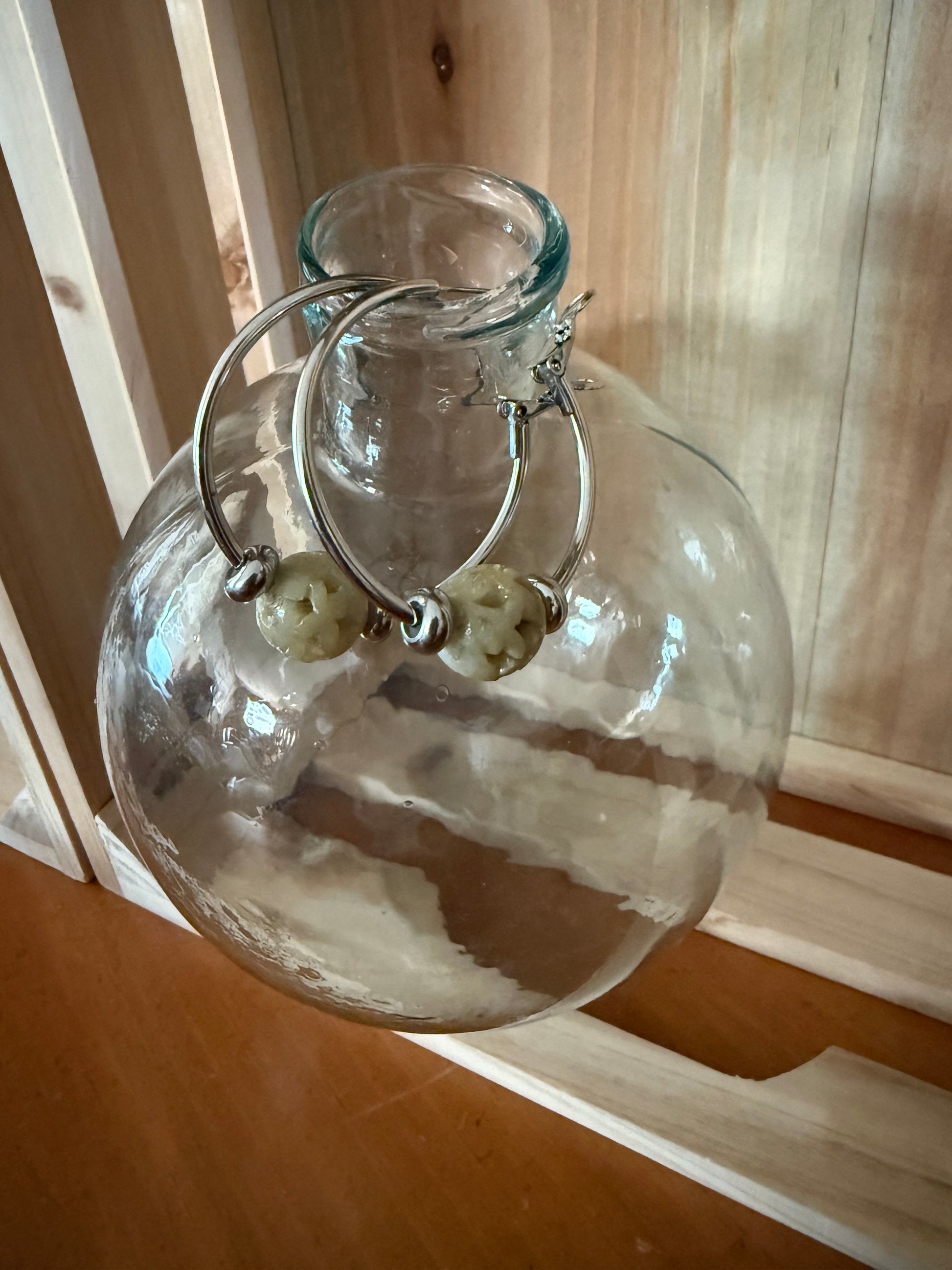Silver Hoop Earrings with Soapstone Bead